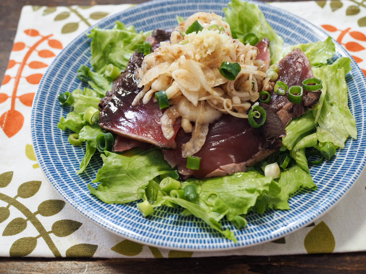 料理写真を撮影するために、とりあえずスーパーでかつおのたたきを買ってきて作ったんです。