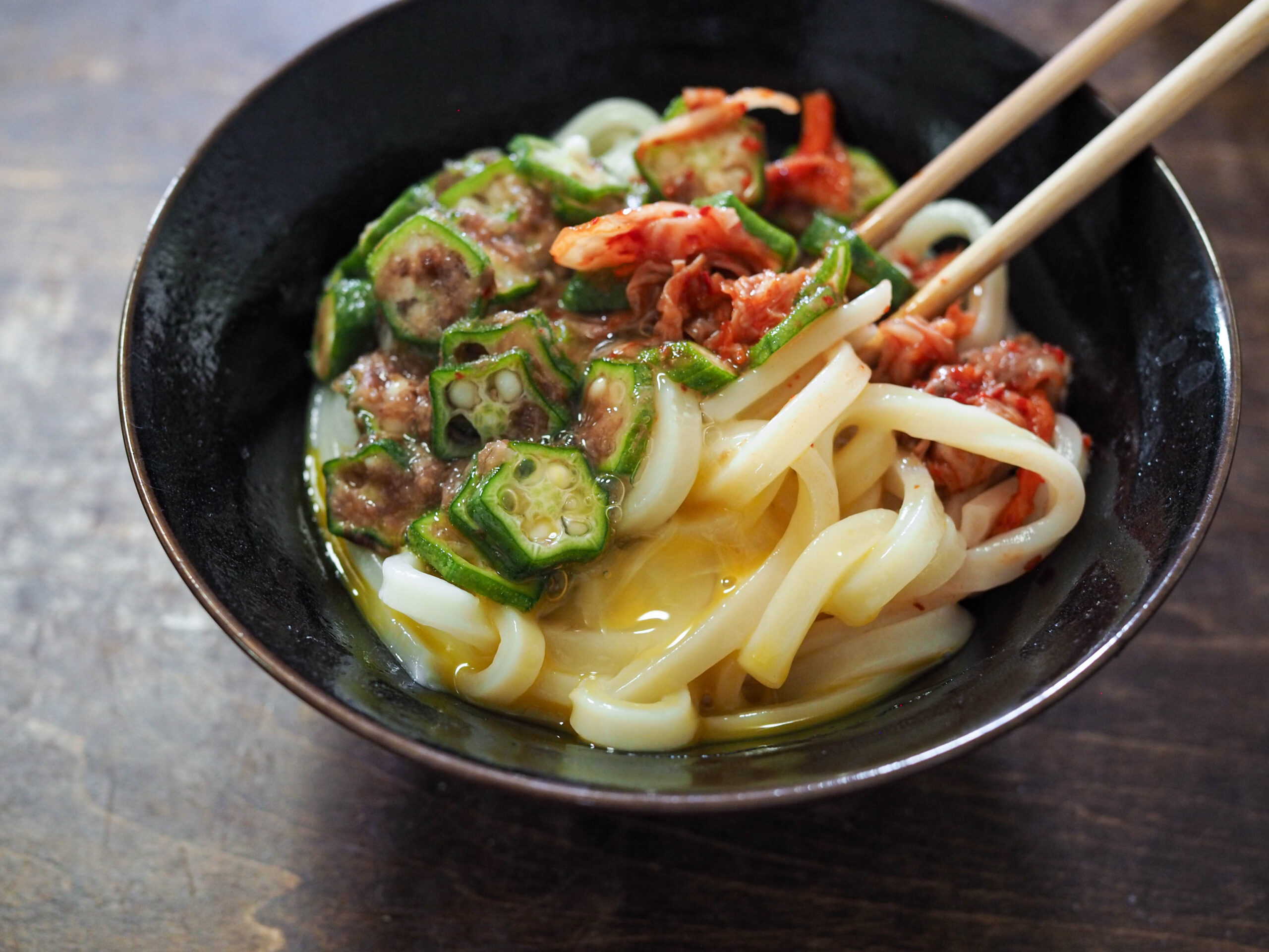 溶き卵に、あつあつのうどんを入れてがーっと混ぜたのが