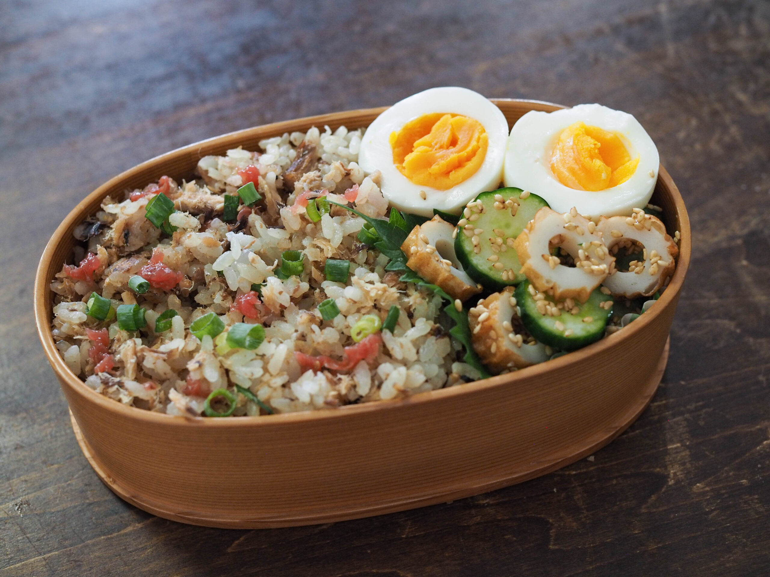 サバ缶梅ご飯は、冷めても美味しいのでお弁当にもおすすめ。