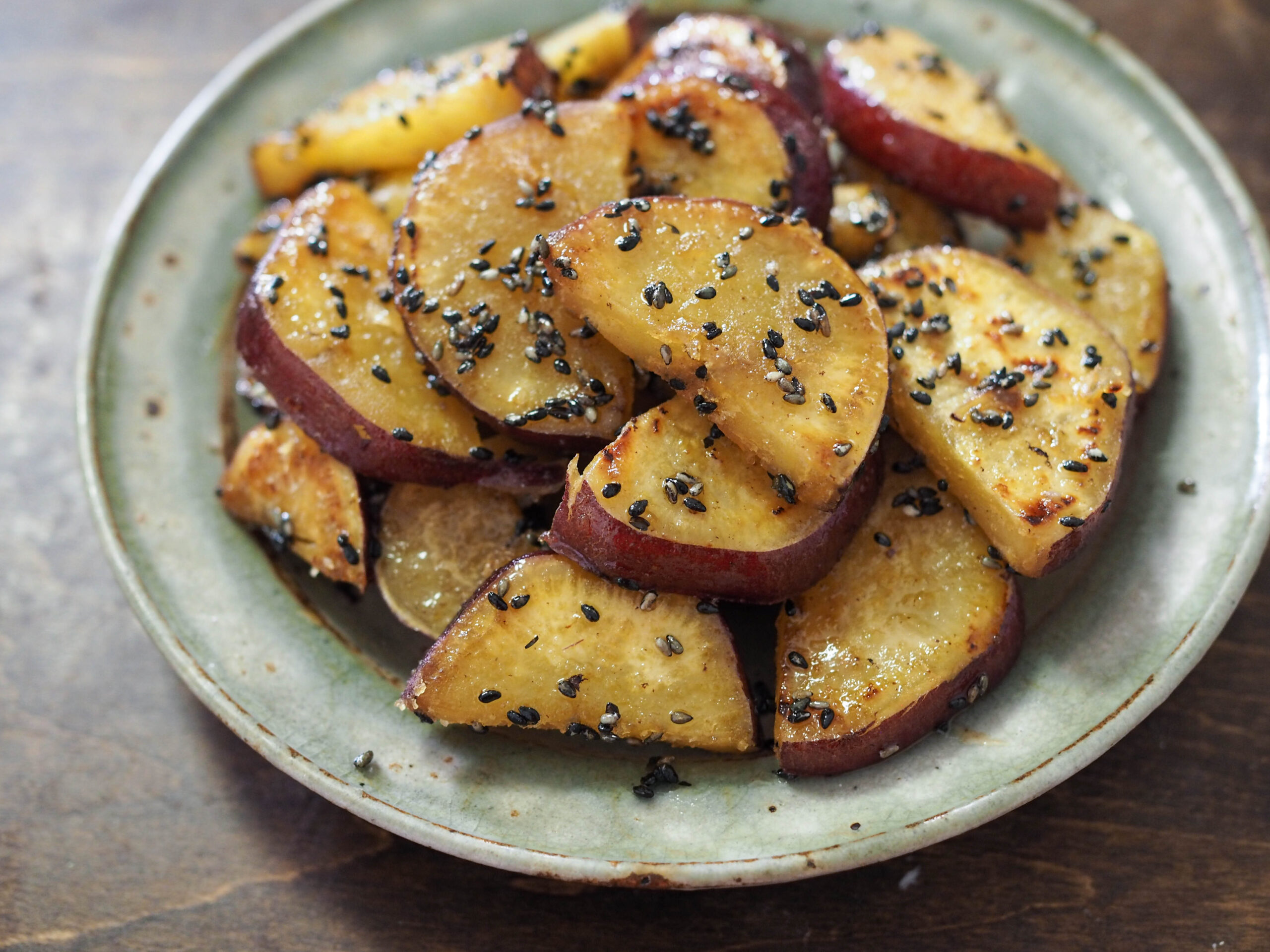 • さつま芋は1センチくらいの厚さに切り、さっと水で洗って表面のでんぷんを洗い流す。