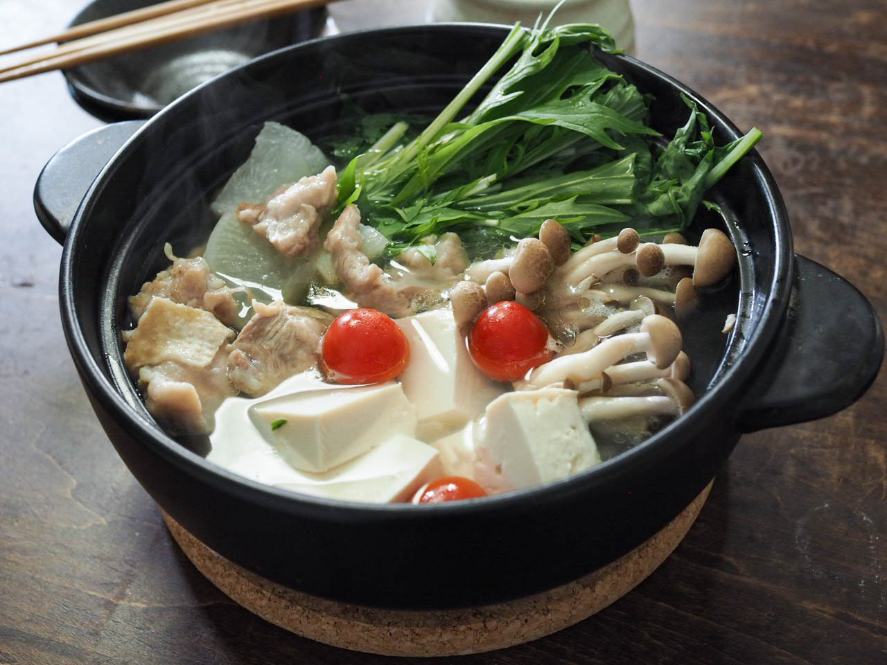 お好みの具を入れて再び火にかけ、全体が熱くなったら食卓に運んで、ポン酢しょうゆで食べる。