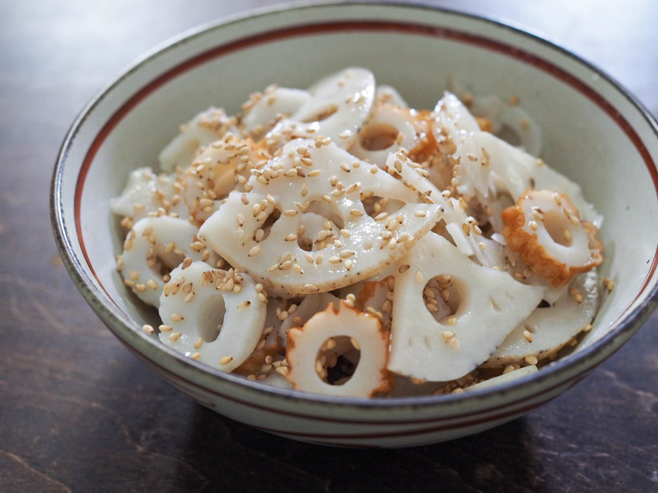 切ったれんこんとAをフライパンに入れて混ぜ、蓋をして火にかける。