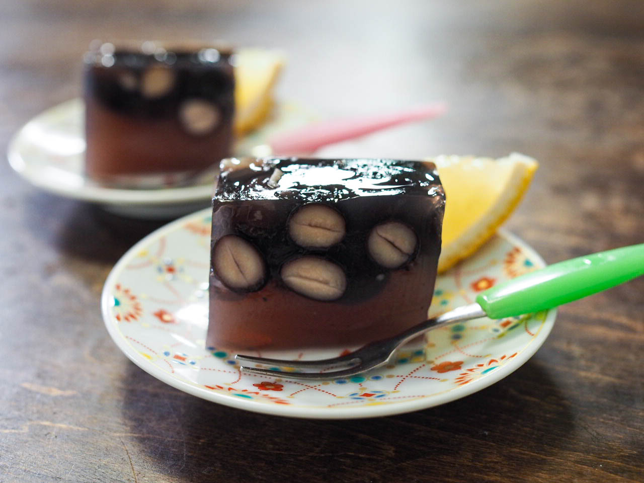 • 沸騰したら夜を弱めて1~2分煮て、もしあれば黒豆を混ぜ、保存容器に流し入れ、粗熱が取れたら冷蔵庫で冷やす。